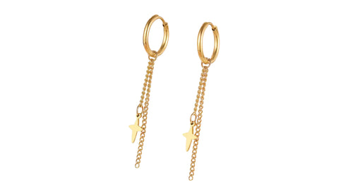 Cross Chain Dangle Hoop Gold
