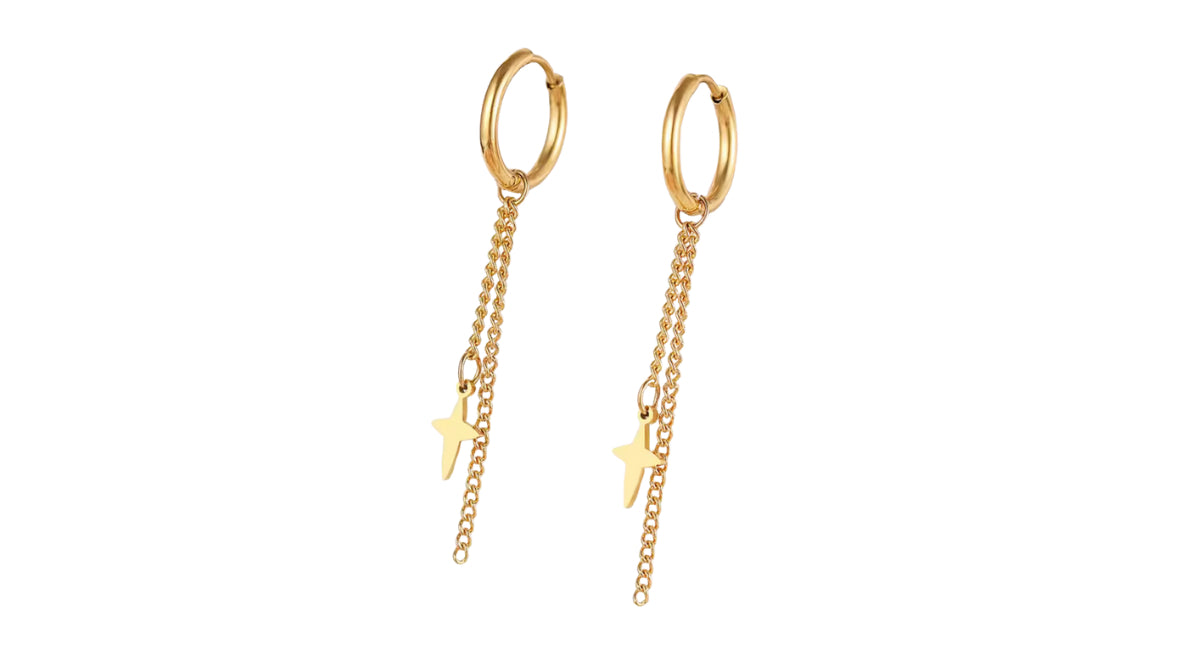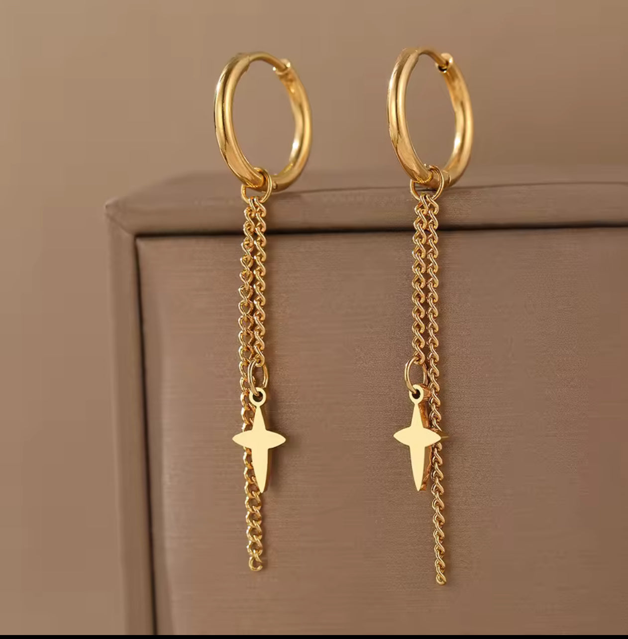 • Load image into Gallery viewer, Cross Chain Dangle Hoop Gold