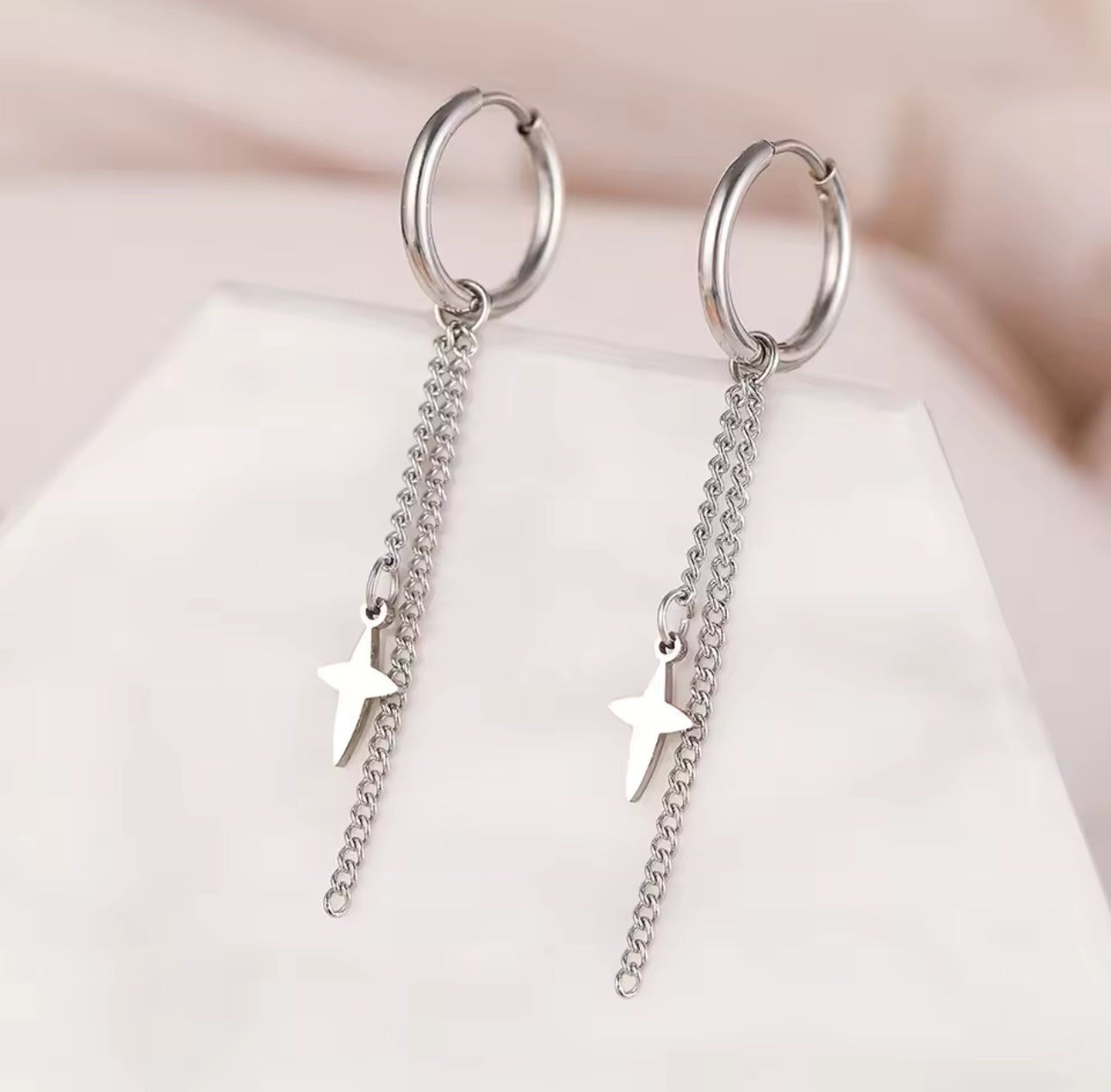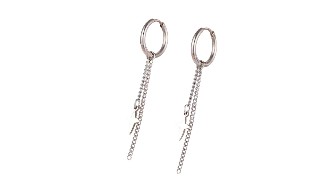 Cross Chain Dangle Hoop Silver